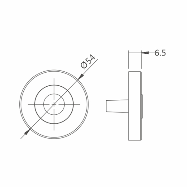 Series : Rosette installation drawings Area of application: For lever handle Material: Rose: Stainless steel ; Base: Plastic Finish: SSS/PSS/PVD Size: Ø54x6.5mm